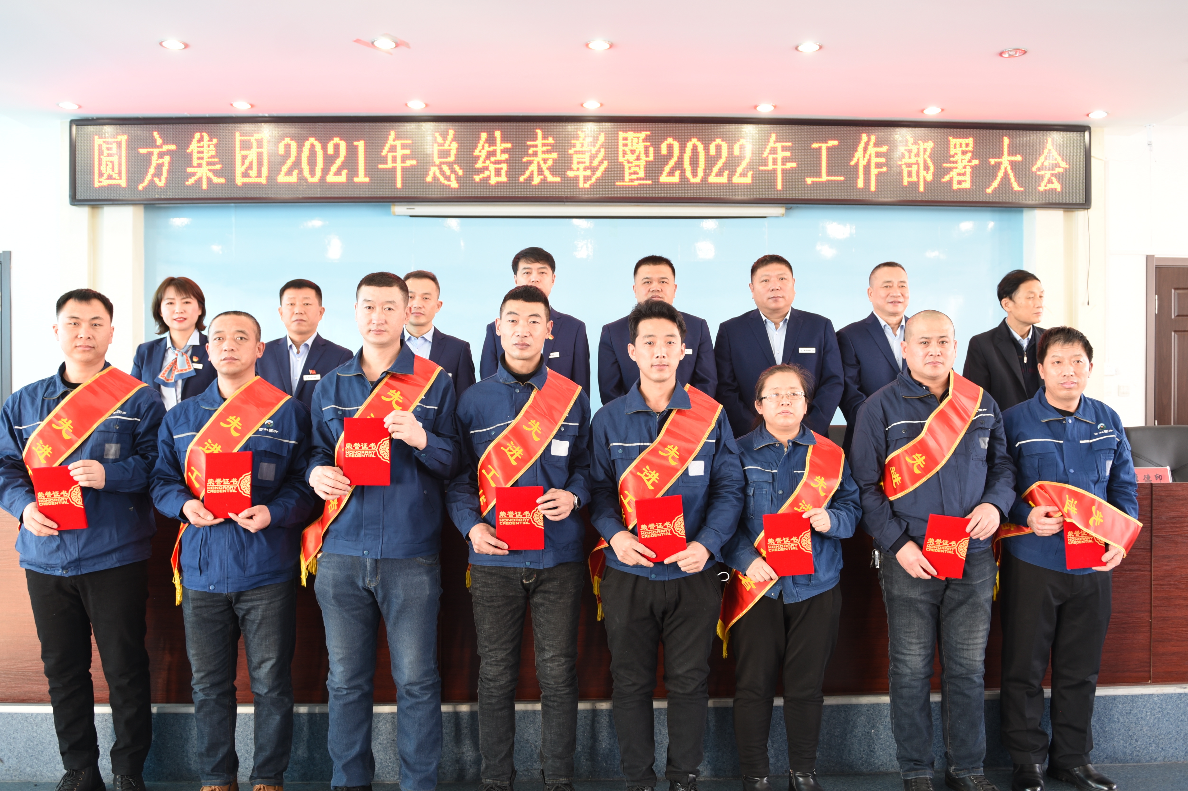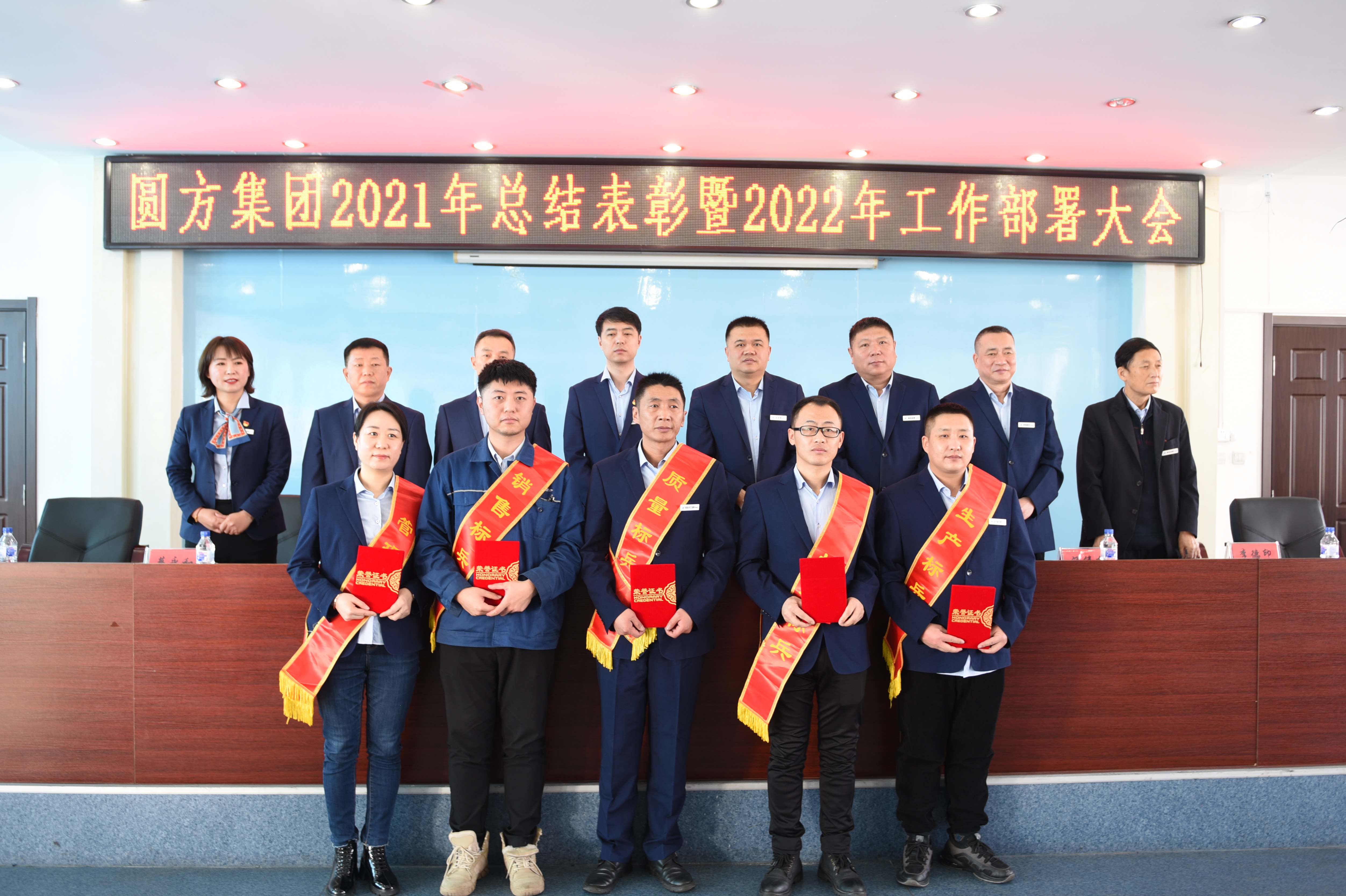 1月28日,集團(tuán)公司隆重召開了以“齊心奮斗、擔(dān)當(dāng)實(shí)干,開創(chuàng)圓方發(fā)展新局面”為主題的2021年度工作總結(jié)、先進(jìn)表彰和2022年度工作部署大會(huì)。會(huì)議全面總結(jié)2021年公司生產(chǎn)經(jīng)營(yíng)工作,安排部署了2022年工作目標(biāo)任務(wù):對(duì)2021年度公司先進(jìn)集體、先進(jìn)標(biāo)兵、先進(jìn)工作者、持續(xù)改進(jìn)及安全消防工作考核進(jìn)行了表彰獎(jiǎng)勵(lì):簽訂了2022年度經(jīng)營(yíng)目標(biāo)管理責(zé)任狀和安全生產(chǎn)責(zé)任狀。會(huì)上,集團(tuán)公司副董事長(zhǎng)鐘致濤作了《幸福源于奮斗,百年惟有擔(dān)當(dāng)》新春致辭。集團(tuán)公司總經(jīng)理張學(xué)良作了《機(jī)制變革、管理提升,齊心奮斗擔(dān)當(dāng)實(shí)干開創(chuàng)圓方發(fā)展新局面》的工作報(bào)告。會(huì)議由集團(tuán)公司黨委副書記、工會(huì)主席張敏主持。全體班子成員,全體管理干部,受到表彰人員,員工代表150余人參加會(huì)議。